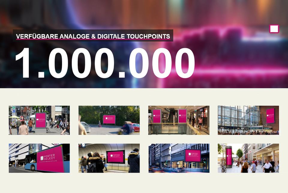 1.000.000 verfügbare analoge und digitale Touchpoints außer Haus, in der Freizeit, im Verkehr , am Point of Sale , auf Reisen.