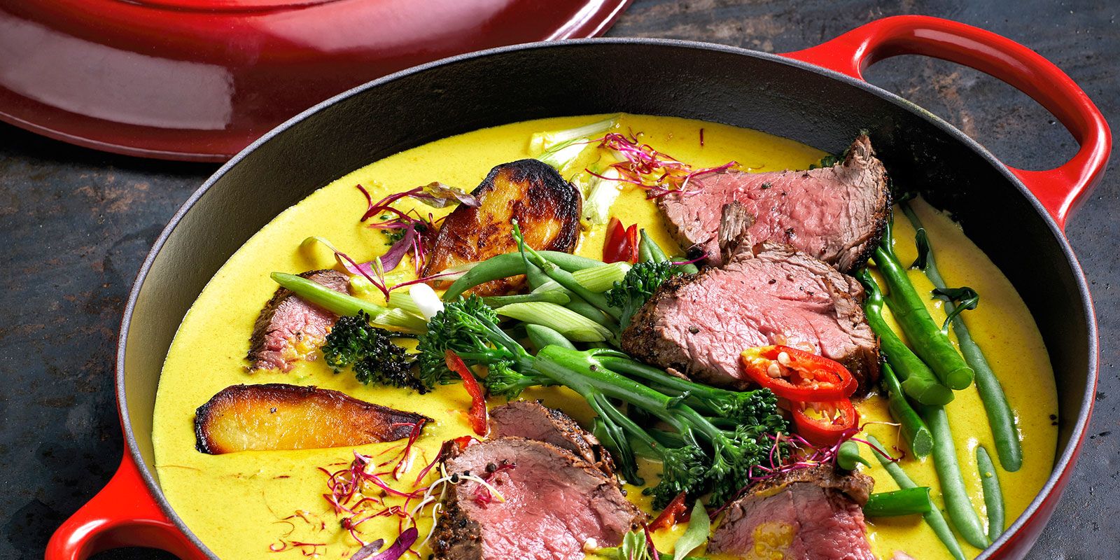 Afrikanisches Curry mit Erdnussbutter und gegrilltem Rinderfilet